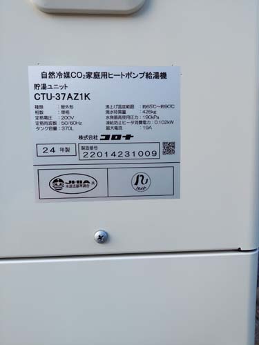高畠町 三菱電機エコキュート→コロナ自然冷媒CO2家庭用ヒートポンプ給湯機貯湯ユニットCTU-37AZ1K、ヒートポンプユニットCHP-DZ451K エコキュート交換工事